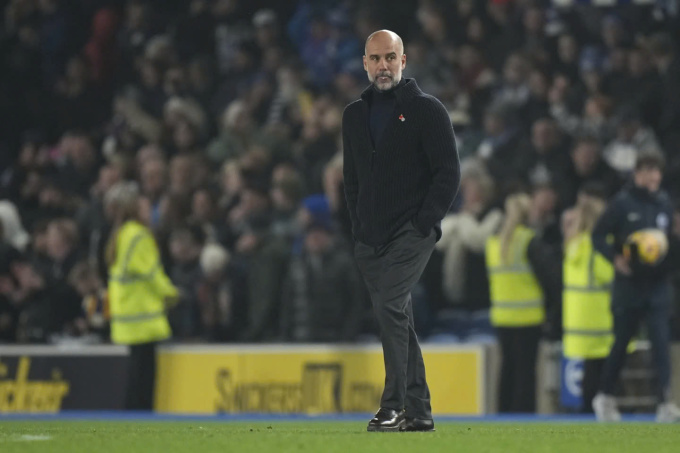 HLV Pep Guardiola sau trận Man City thua Brighton trên sân Amex,vòng 11 Ngoại hạng Anh tối 9/11/2024. Ảnh: AP