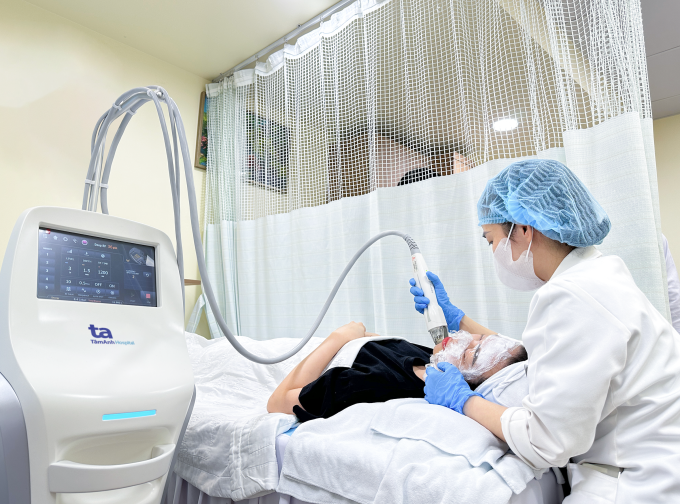 Trẻ hóa da bằng công nghệ vi kim kết hợp sóng RF tại Bệnh viện Đa khoa Tâm Anh TP HCM. Ảnh: Bệnh viện cung cấp