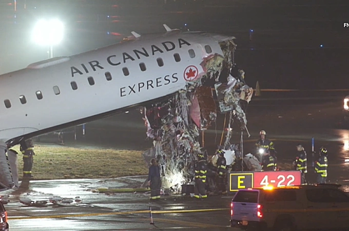 Máy bay mẫu Bombardier CRJ-900,do hãng Jazz Aviation khai thác cho Air Canada Express,va chạm khi đã vào giai đoạn cuối quá trình hạ cánh ở đường băng số 4 và di chuyển với tốc độ khoảng 48 km/h. Trên máy bay có 72 hành khách và 4 thành viên tổ bay.