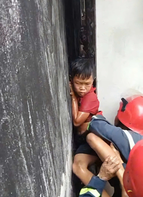Giải cứu bé trai kẹt giữa hai bức tường ở TP HCM