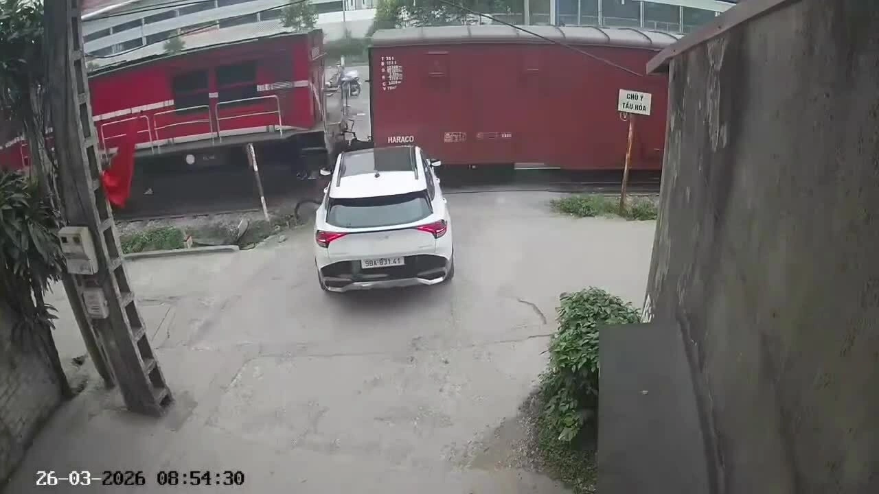 Xe con từ từ đi vào phần đường giao với đường ray dù tàu hỏa đang tới khá gần. Tài xế không kịp phản ứng gì khi tàu lao tới. Cú va chạm mạnh khiến đầu chiếc xe bị vò nát phần đầu,xoay ngang. Vụ tai nạn không gây thiệt hại về người,tuy nhiên xe con bị hư hỏng nặng.