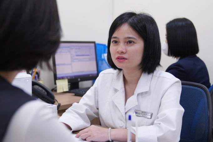 Bác sĩ Ninh tư vấn cho chị Hà. Ảnh: Phòng khám Đa khoa Tâm Anh Cầu Giấy