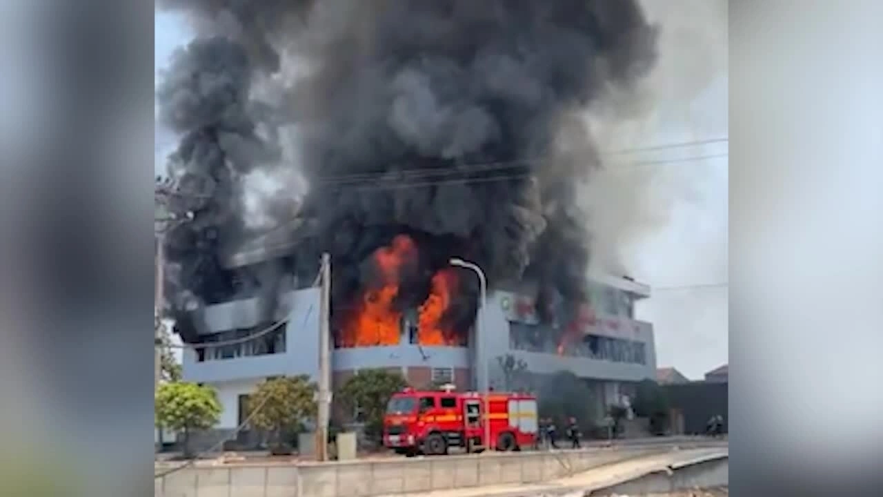 Do trời nắng,bên trong chứa nhiều vật liệu dễ cháy nên lửa bùng phát mạnh,khiến công tác chữa cháy gặp nhiều khó khăn.