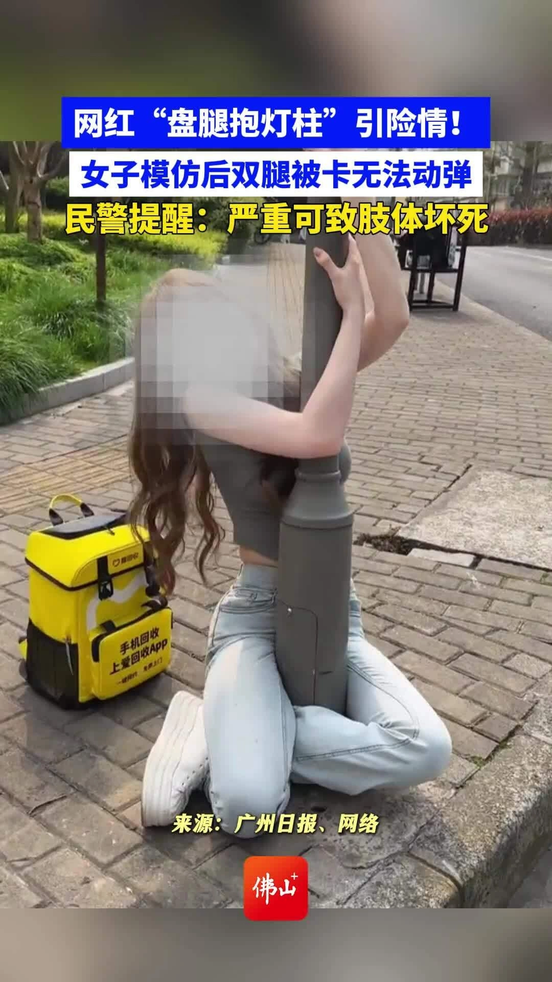 Mắc kẹt vì 'đu trend' vắt chéo chân quanh cột đèn
