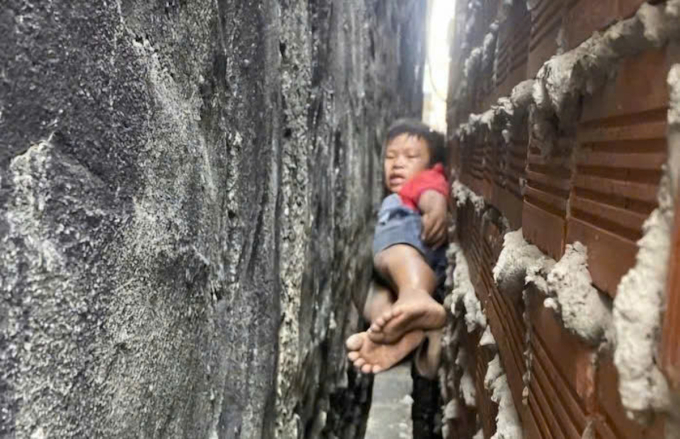 Giải cứu bé trai kẹt giữa hai bức tường ở TP HCM