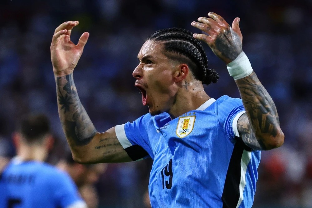 Nunez mừng bàn nhân đôi cách biệt trận Uruguay 3-1 Panama sáng 24/6 ở vòng bảng Copa America tại Mỹ. Ảnh: AFP