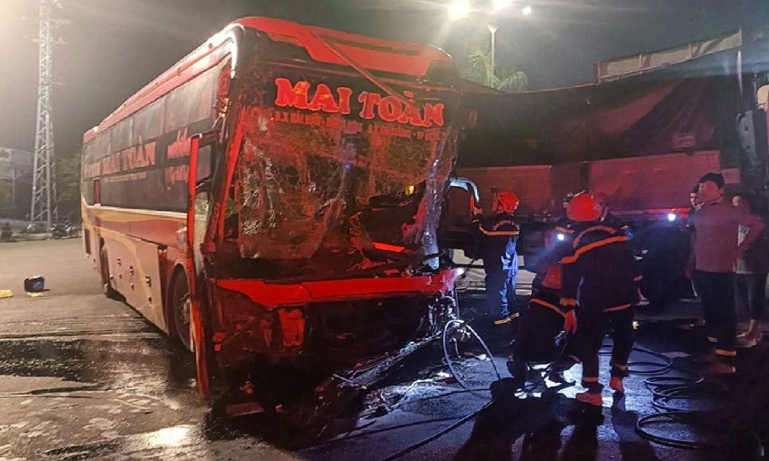 Cú tông mạnh khiến cabin ôtô khách biến dạng,xe tải hư hỏng phần thân. Thùng nhiên liệu của hai xe đổ tràn ra khắp mặt đường. Hơn 30 người trên ôtô khách hỗn loạn,đập cửa thoát hiểm thoát thân,một số người bị xây xát nhẹ.