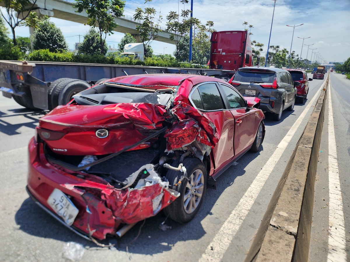 Gần 10h,xe đầu kéo do nam tài xế hơn 30 tuổi chạy trên xa lộ Hà Nội hướng từ TP HCM về Đồng Nai. Khi gần đến khu công nghệ cao TP Thủ Đức,ôtô bất ngờ húc xe 4 chỗ chạy trước rồi đâm vào dải phân cách. Xe bị tông đã lao lên va chạm với hai ôtô 7 chỗ tạo thành chuỗi va chạm liên hoàn.