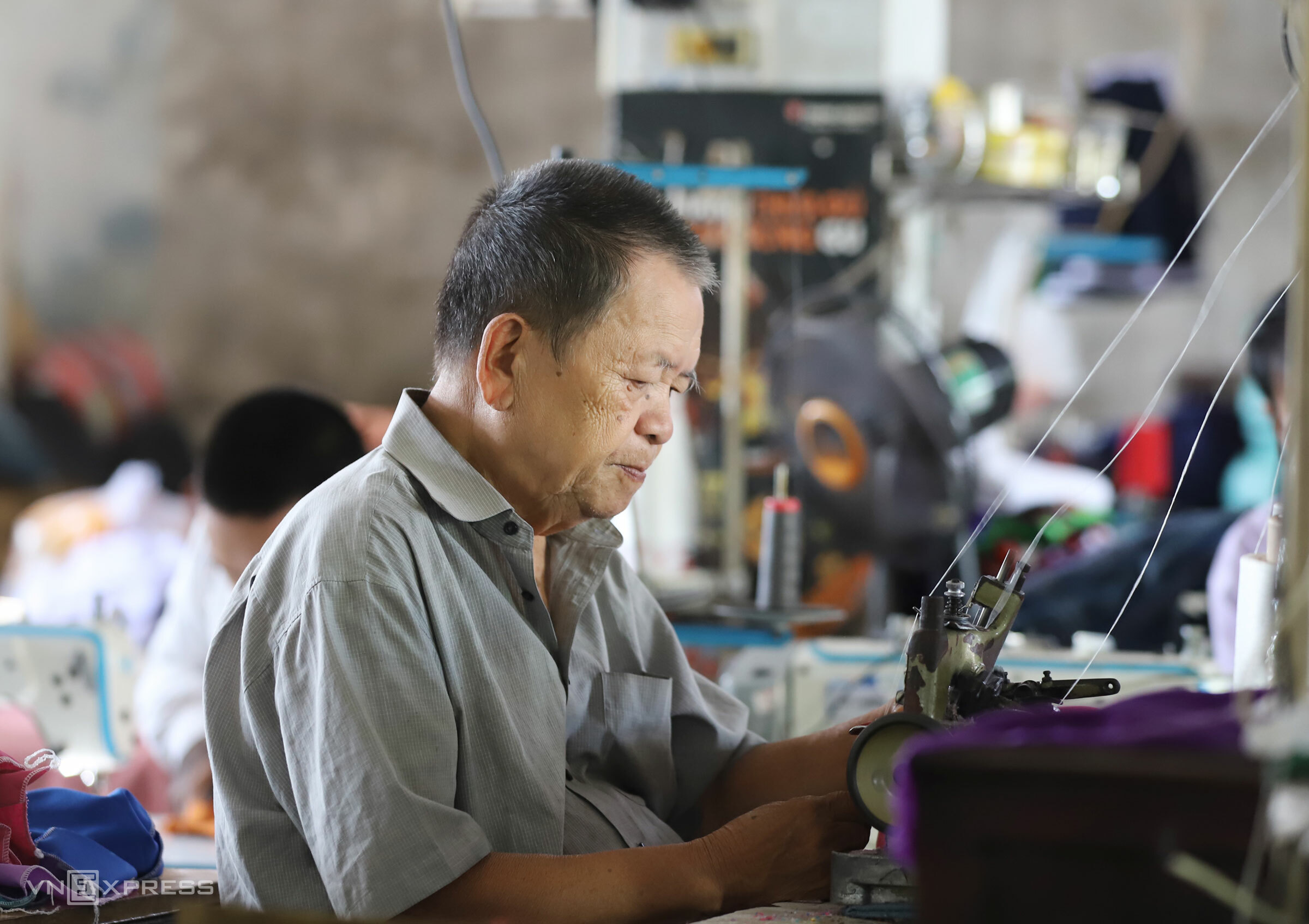 Người già không có lương hưu,làm thêm nghề may ở chợ Đông Ba (Huế). Ảnh: Võ Thạnh