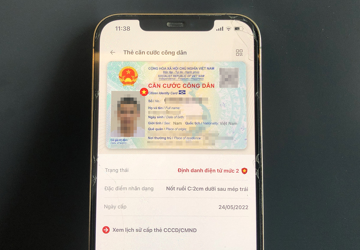 Thông tin thẻ căn cước công dân trên ứng dụng VNeID. Ảnh: Phạm Dự