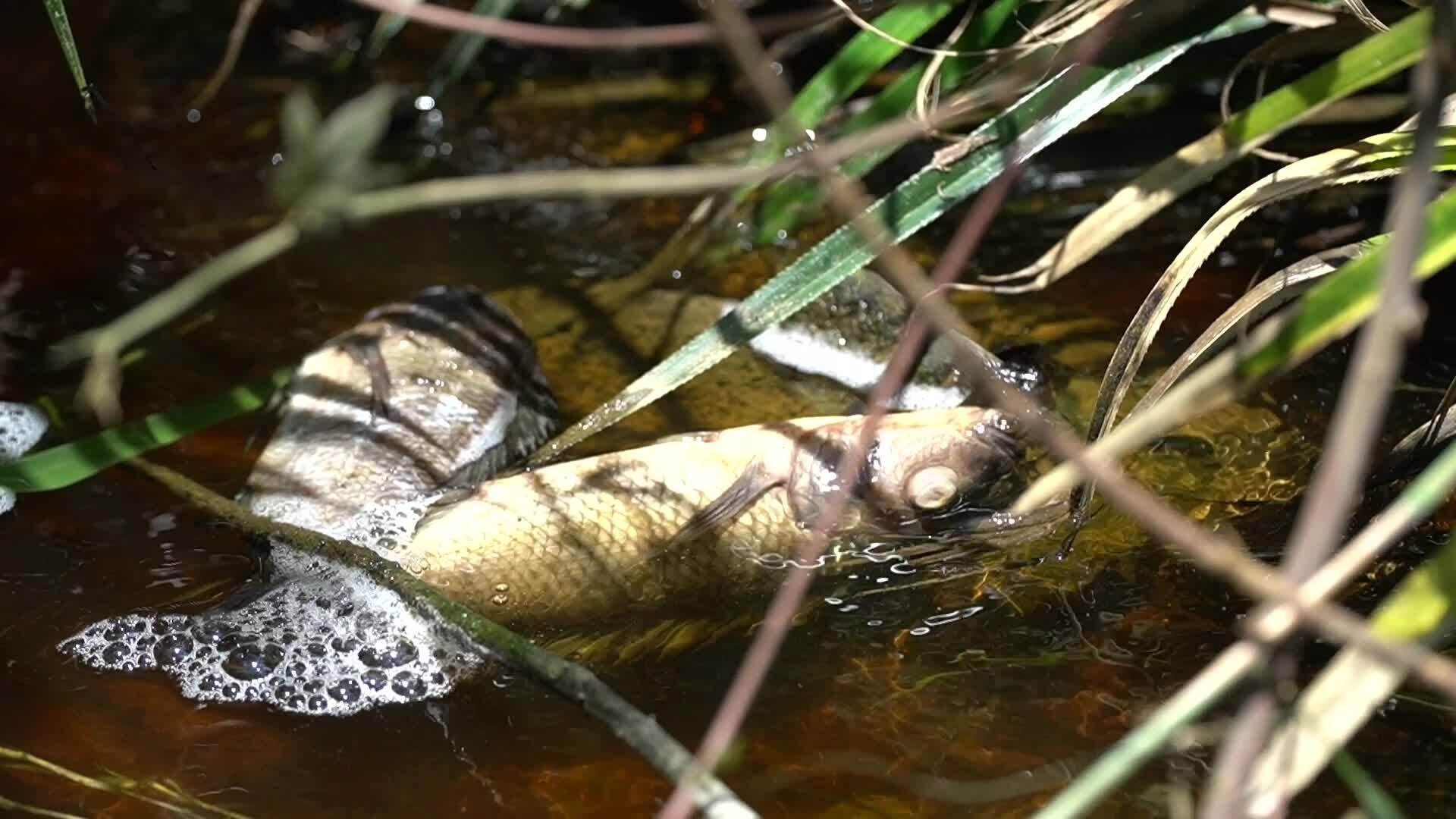 Xác cá nổi la liệt trên dòng khe Sào. Video: Lê Hoàng