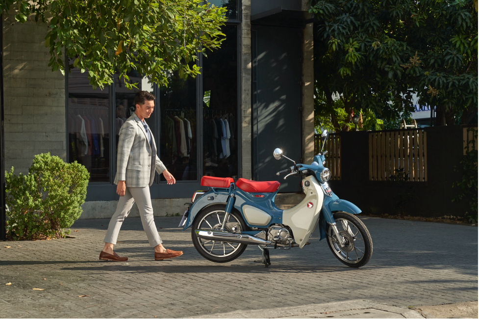 Thiết kế cổ điển cũng là xu hướng được Honda thể hiện trên Super Cub C125 ra mắt lần này. Theo hãng,phiên bản mới ra mắt mang cảm hứng từ dòng Super Cub C100 đời đầu tiên,bổ sung màu xanh dương hoàn toàn mới bên cạnh bản tiêu chuẩn màu xanh xám và bản đặc biệt màu đen nhám.