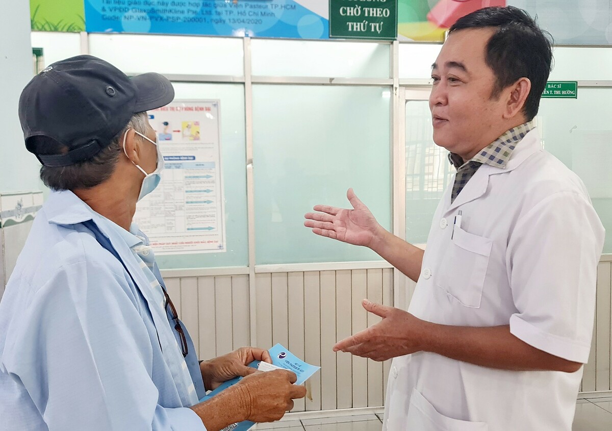 Bác sĩ tư vấn cho người dân đến tiêm ngừa tại Viện Pasteur TP HCM,ngày 12/7. Ảnh: Lê Phương