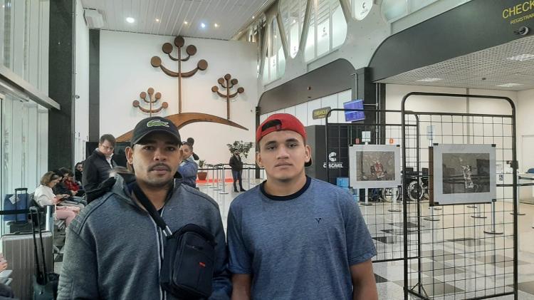 Hành khách Jose Lima và Izael Souza Silva tại sân bay Cascavel hôm 9/8. Ảnh: UOL