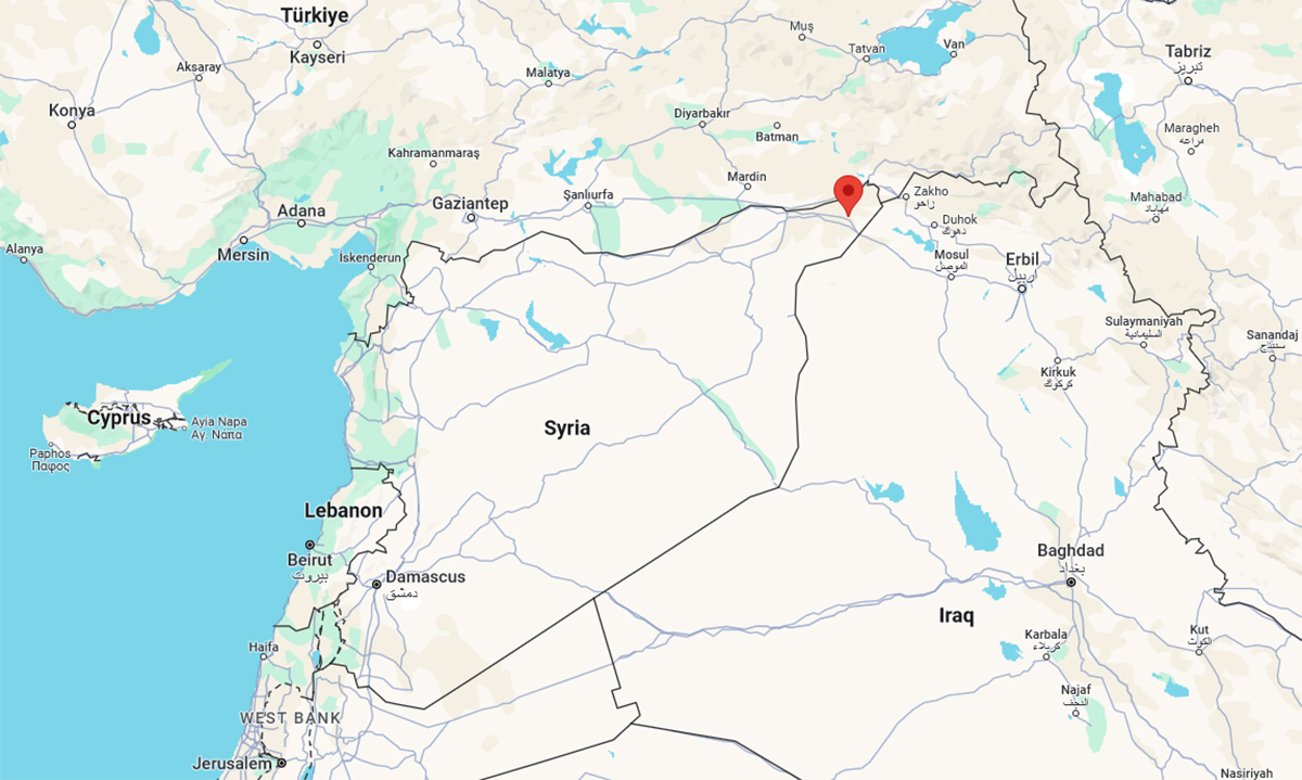 Vị trí thị trấn Rumalyn,Syria (đánh dấu đỏ). Đồ họa: Google