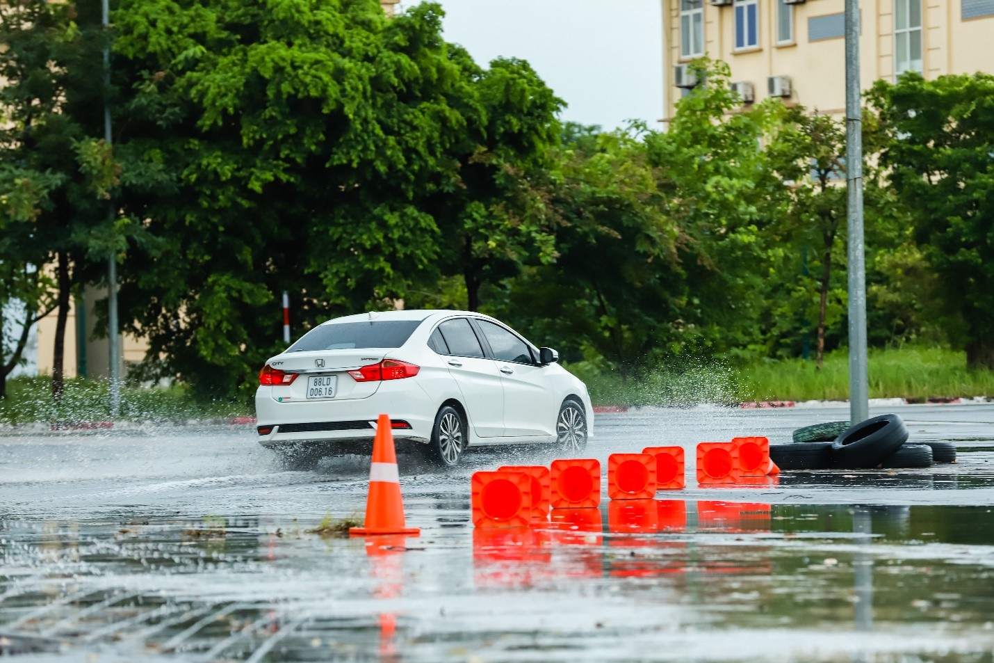 Mẫu xe Honda City trong phần thực hành trên đường trơn trượt. Ảnh: HVN