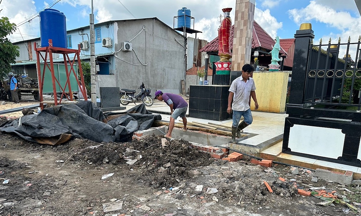 Ông Phùng Quốc Việt,Chủ tịch UBND xã Vĩnh Lộc A,cho biết khu đất trên do ông Huỳnh Văn Lánh,80 tuổi,làm chủ,cho nhiều người dân xây mộ hơn 10 năm trước. Người chủ cũng lập ngôi chùa tu tại gia cạnh khu đất này.