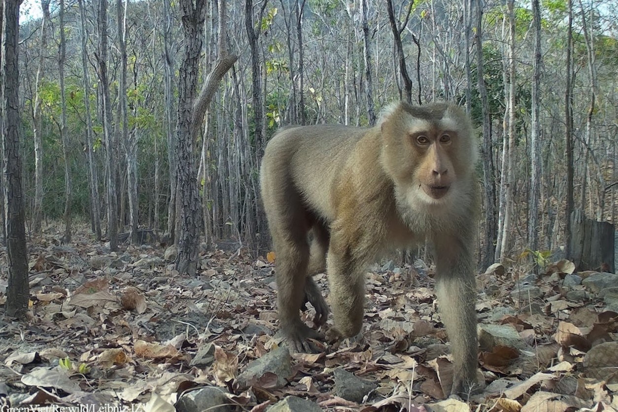 Một con khỉ đuôi lợn trong rừng Lòng Sông - Đá Bạc. Nguồn: Viện Sinh thái học Miền Nam