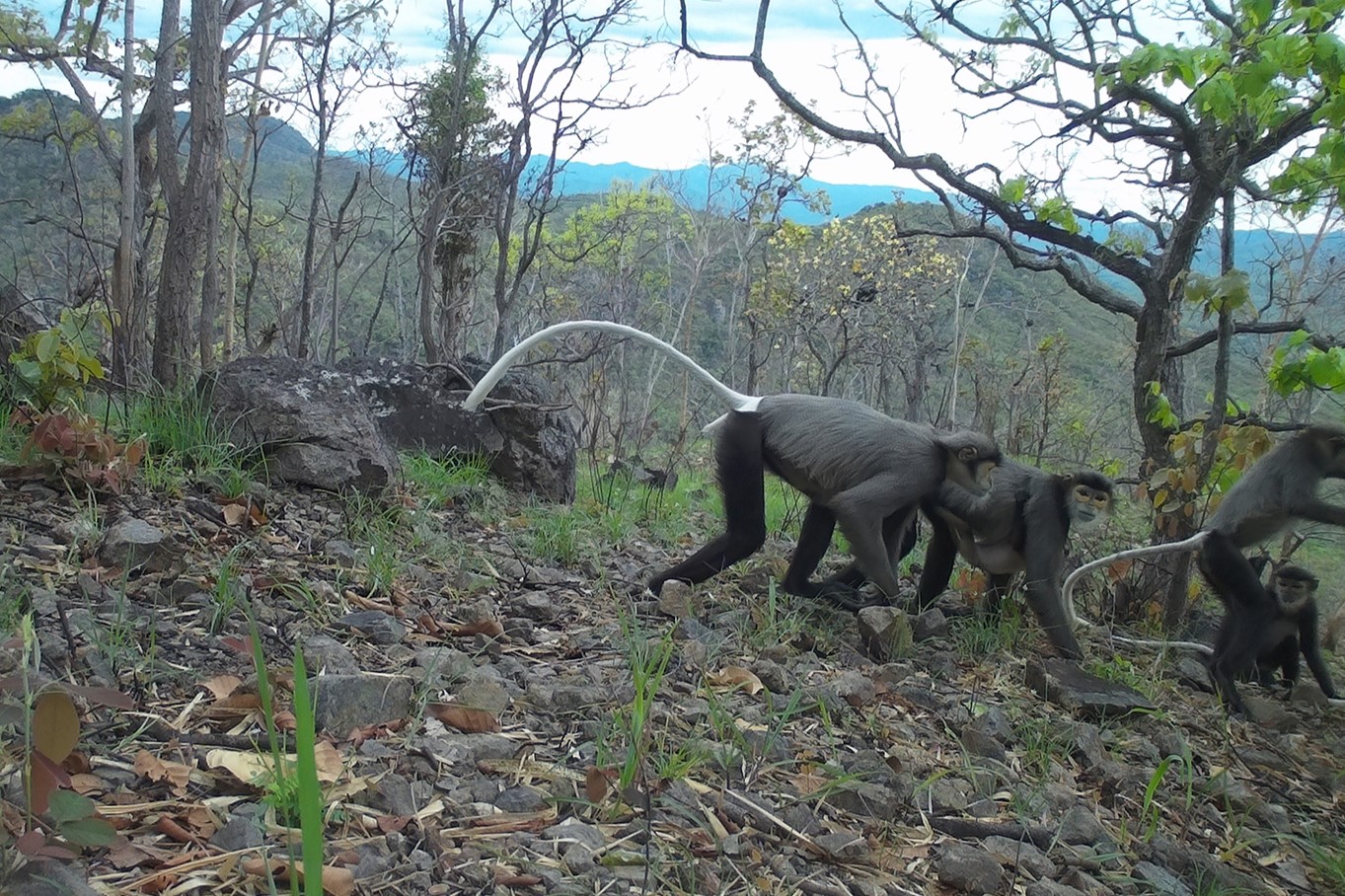 Bốn con chà vá chân đen được bẫy ảnh ghi lại. Ảnh: Viện Sinh thái học Miền Nam