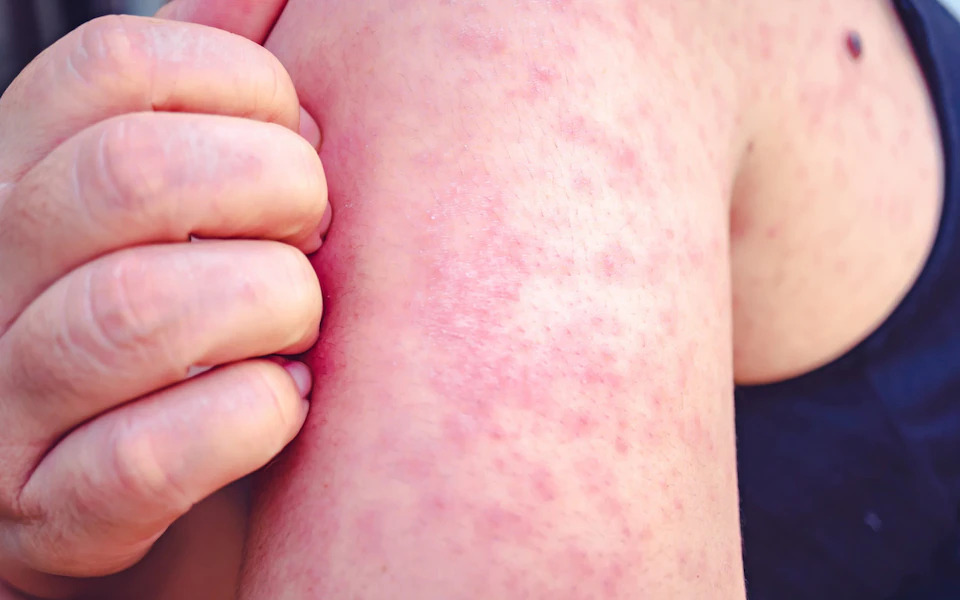 Cánh tay phát ban ở người mắc sởi. Ảnh: Telegraph
