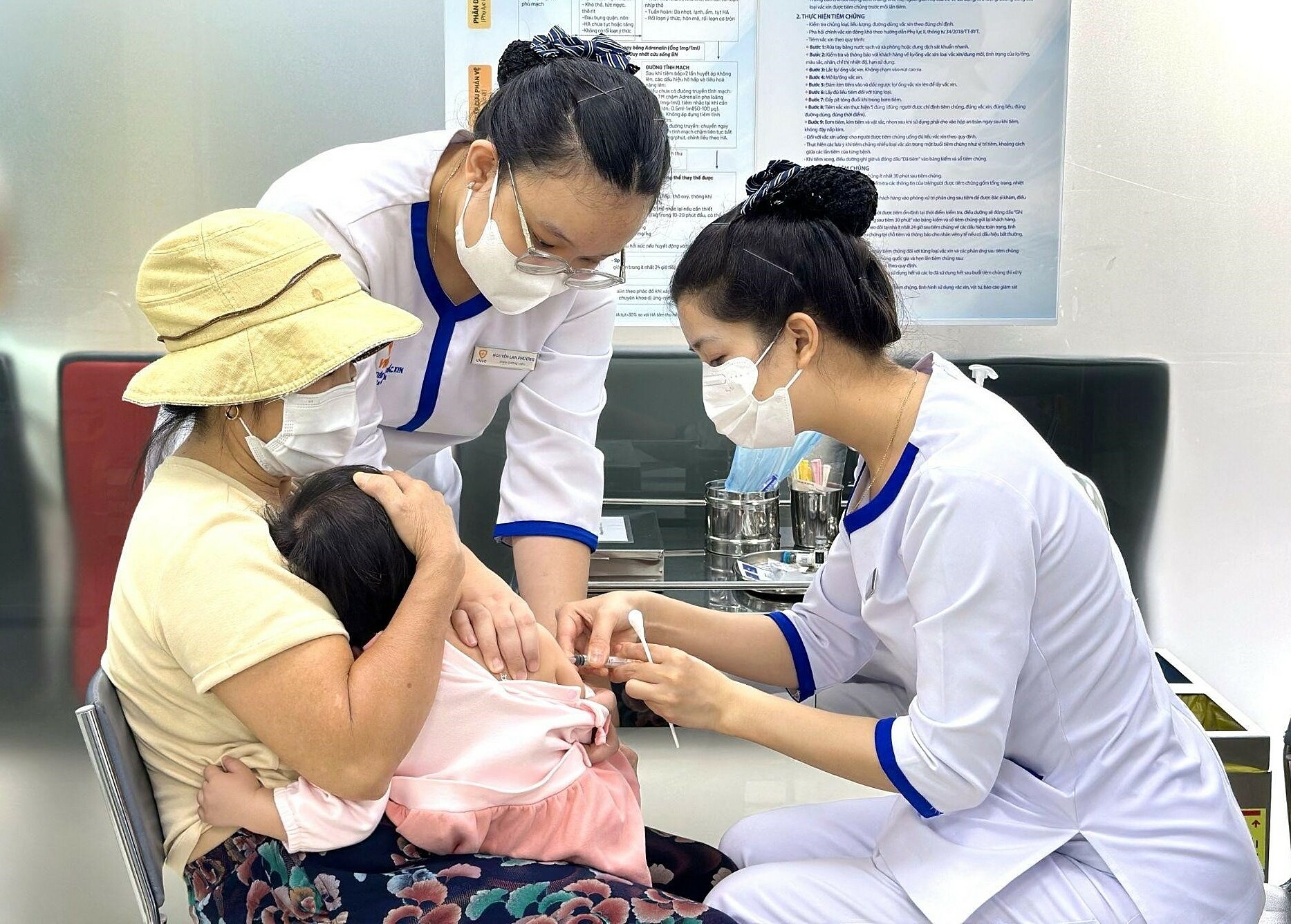Trẻ tiêm vaccine phối hợp ngừa sởi - quai bị - rubella tại VNVC Hoàng Văn Thụ (TP HCM) ngày 14/8. Ảnh: Tấn Ngọc