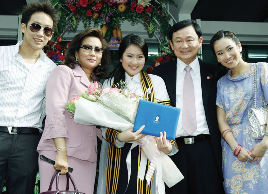 Bà Paetongtarn Shinawatra (thứ ba từ trái sang) tại lễ tốt nghiệp Đại học Chulalongkorn tháng 7/2008. Ảnh: Khaosod