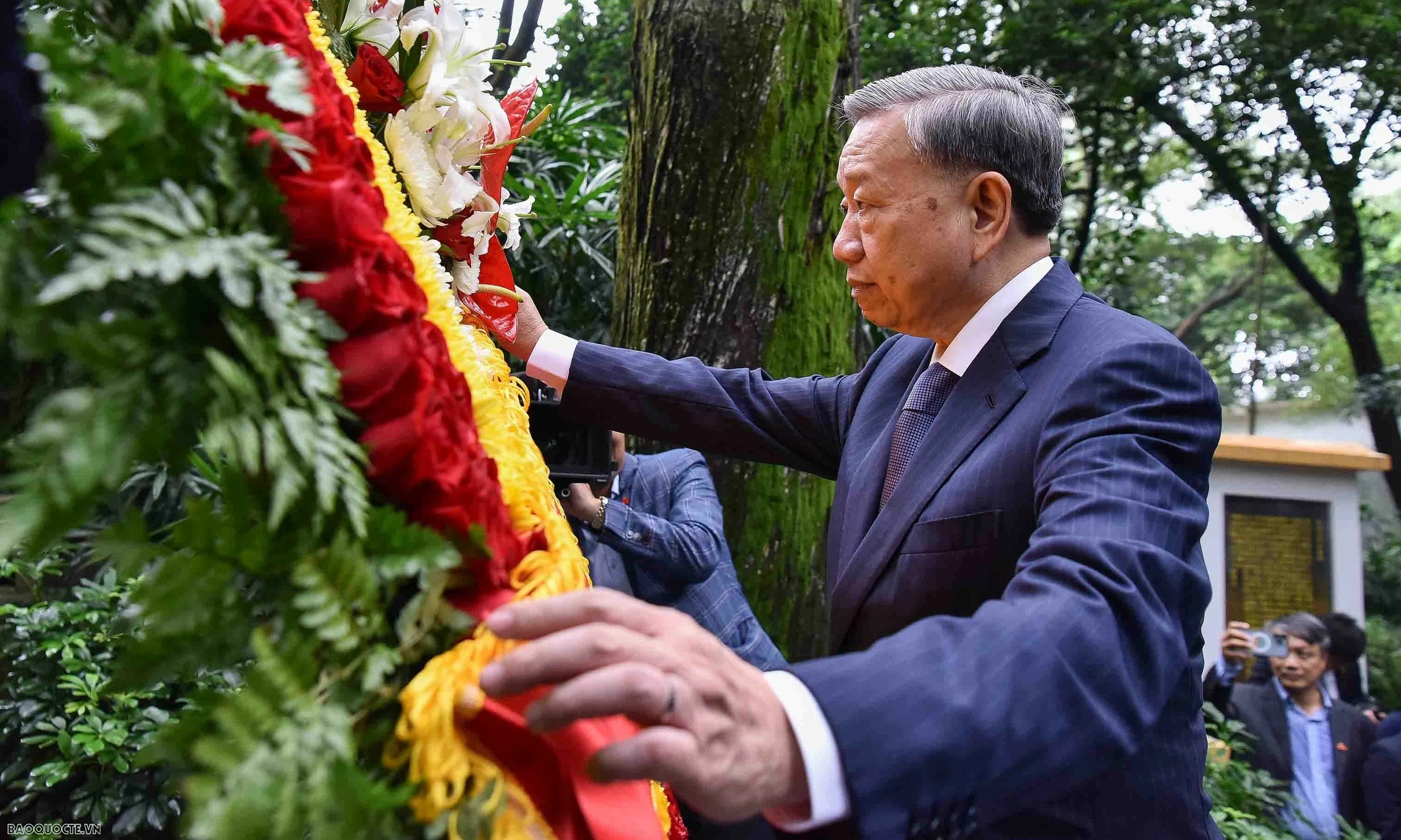 Tổng Bí thư,Chủ tịch nước Tô Lâm dâng hoa tại mộ liệt sĩ Phạm Hồng Thái,ở Quảng Châu,Trung Quốc,ngày 18/8. Ảnh: Báo Thế giới và Việt Nam