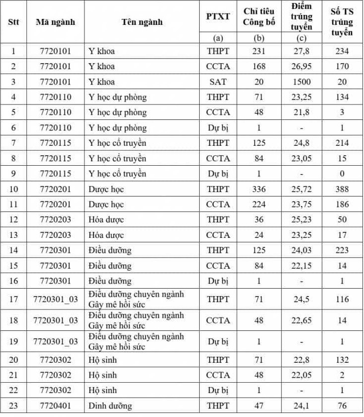 Điểm chuẩn Đại học Y Dược TP HCM cụ thể như sau: