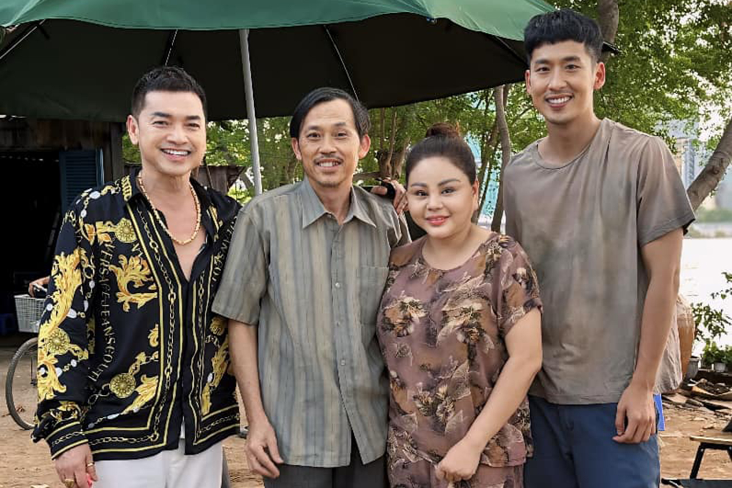 Từ trái qua: Quang Minh cùng Hoài Linh,Lê Giang,Tuấn Trần - các diễn viên cùng dự án. Diễn viên cho biết may mắn khi vẫn được nhiều đạo diễn,nhà sản xuất trong nước quan tâm. Anh thường đi về giữa Mỹ - Việt Nam để tham gia các dự án phim ảnh,show truyền hình. "Tôi thường tìm niềm vui bằng cách lao vào làm việc",nghệ sĩ cho biết.