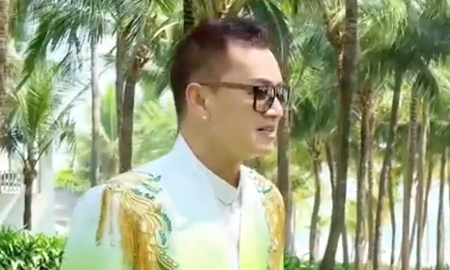 Quang Minh tạo dáng với áo dài ở sự kiện. Video: Nhân vật cung cấp