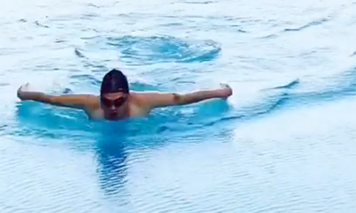 Quang Minh tập bơi mỗi ngày để giữ vóc dáng. Video: Nhân vật cung cấp