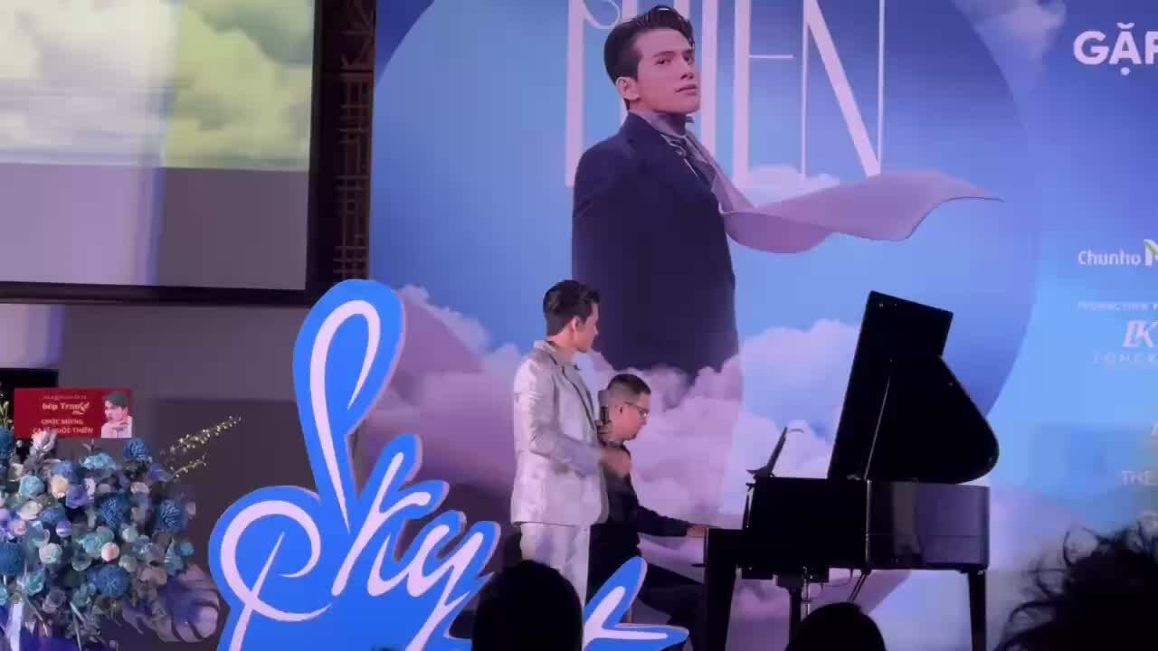Quốc Thiên ở buổi họp báo live concert đầu tiên trong sự nghiệp ca hát. Ảnh: Kiếng Cận team