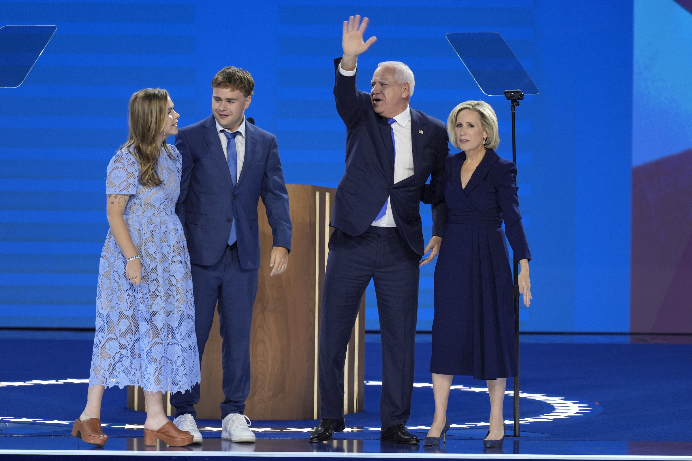 Thống đốc Minnesota Tim Walz cùng vợ và các con tại đại hội toàn quốc đảng Dân chủ ở Chicago ngày 21/8. Ảnh: AP