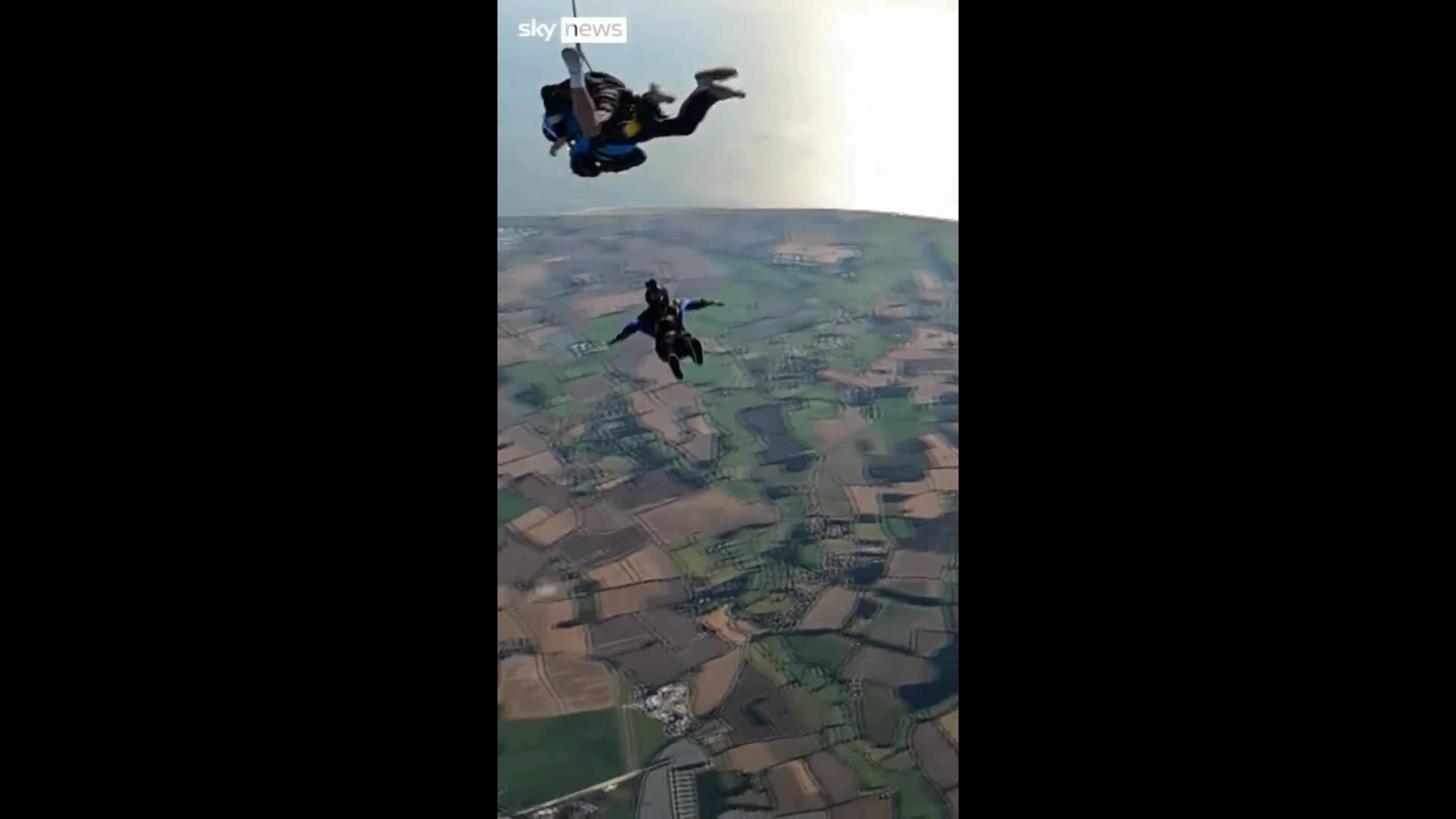 Cụ bà Manette Baillie nhảy dù ở tuổi 102,cùng hướng dẫn viên chuyên nghiệp. Ảnh: Sky News