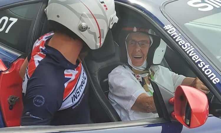 Cụ bà Manette Baillie lái xe Ferrari đạt tốc độ 209 km/h mừng sinh nhật 100 tuổi. Ảnh: Telegraph
