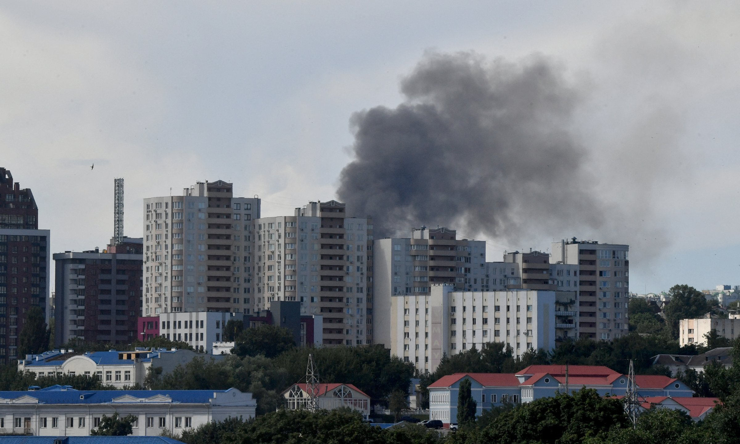 Cột khói đen bốc lên ở trung tâm Kiev sau đòn không kích hồi tháng 7. Ảnh: AFP