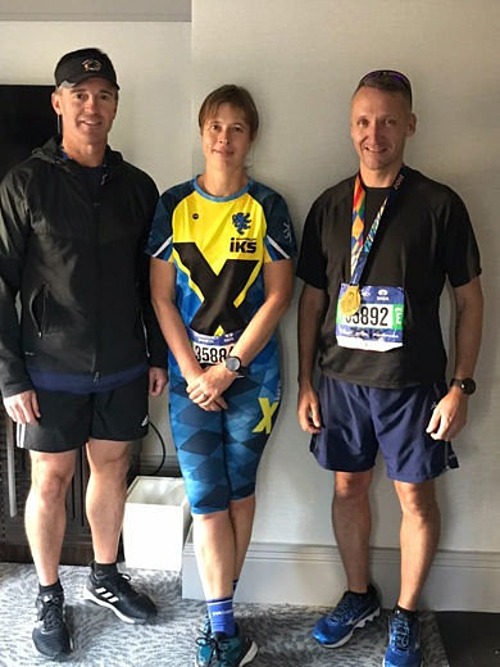 Các đặc vụ Brayman (trái) và Uher (phải) chụp ảnh cùng Tổng thống Estonia Kersti Kaljulaid sau khi tháp tùng bà chạy New York City Marathon 2018. Ảnh: US Secret Service