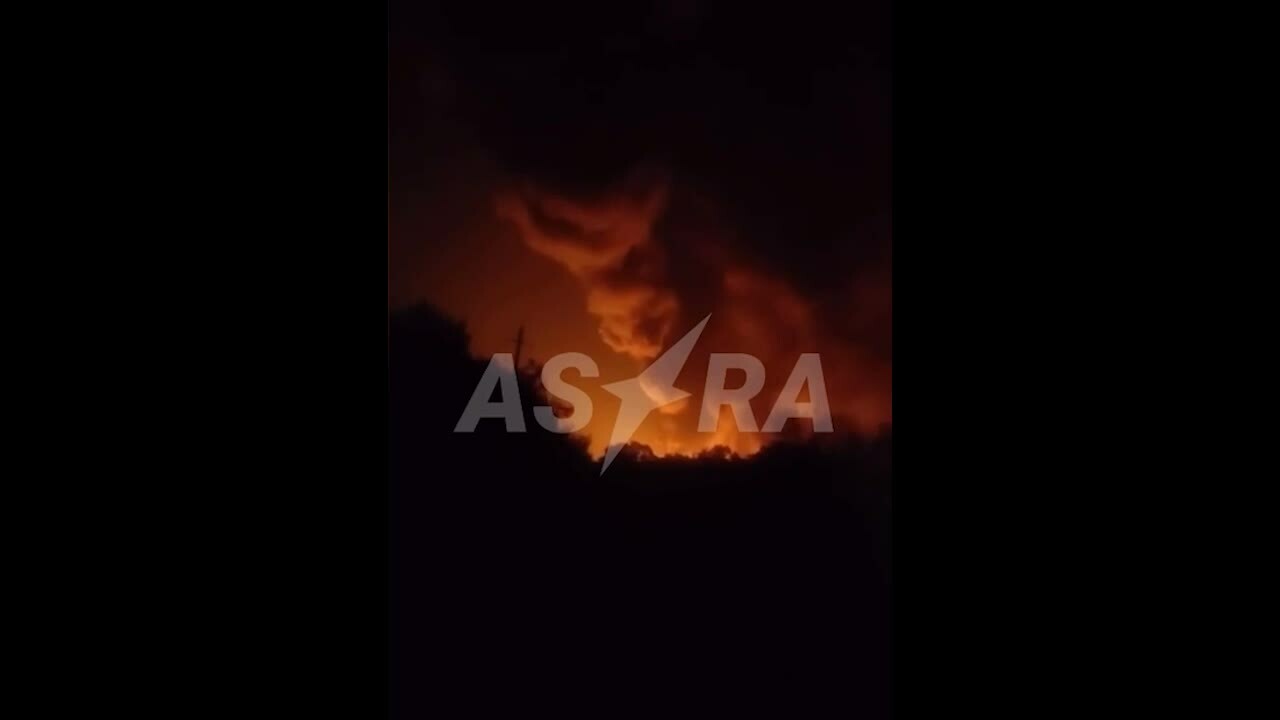 Đám cháy được cho là tại quận Kamensky ở tỉnh Rostov đêm 27/8. Video: Telegram/ASTRA