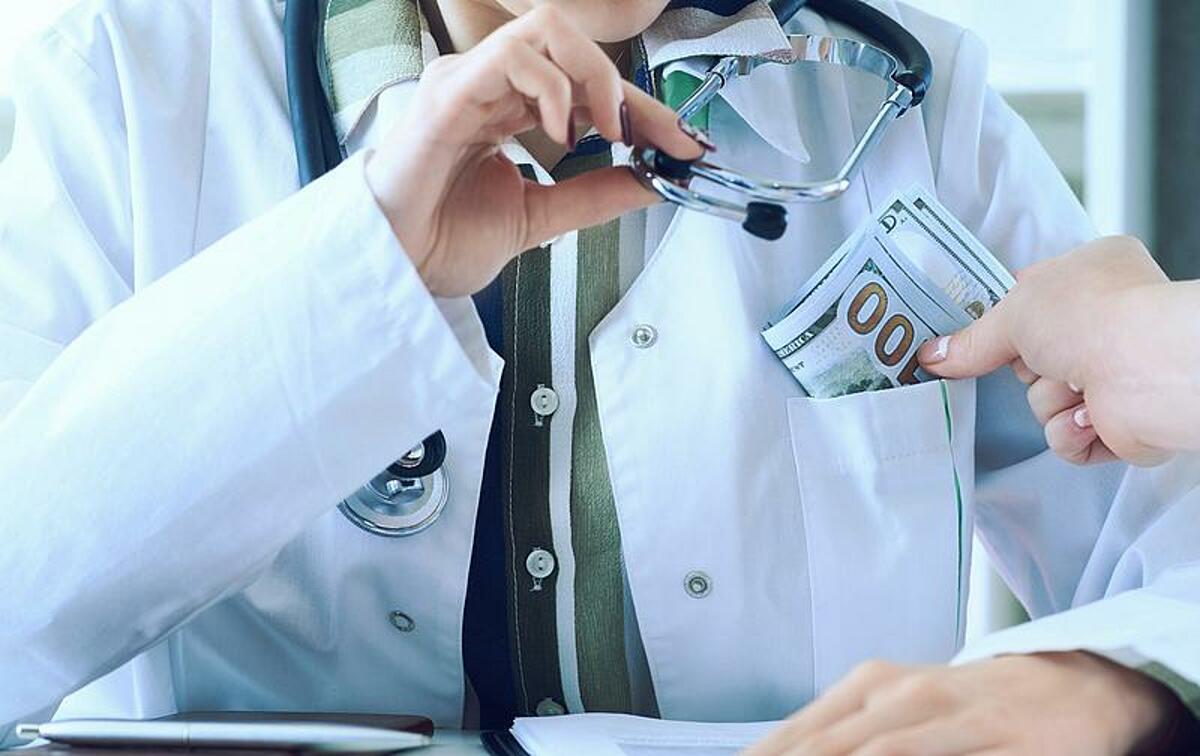Minh họa một bác sĩ nhận tiền hối lộ của bệnh nhân. Ảnh: Romania Insider