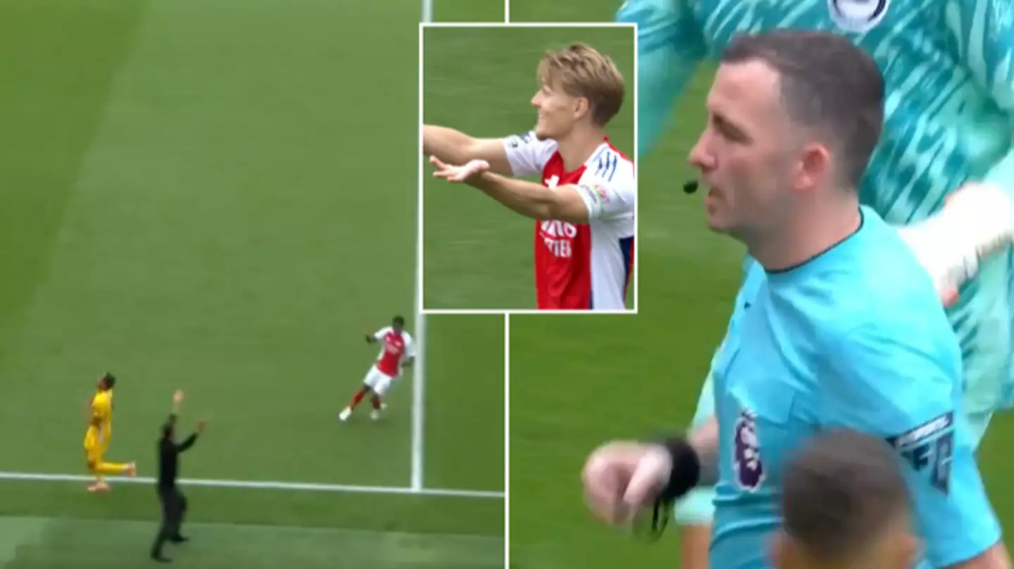Đầu tiên là tình huống cuối hiệp một, khi Joao Pedro đá bóng lên khán đài sân Emirates sau tiếng còi của Kavanagh.