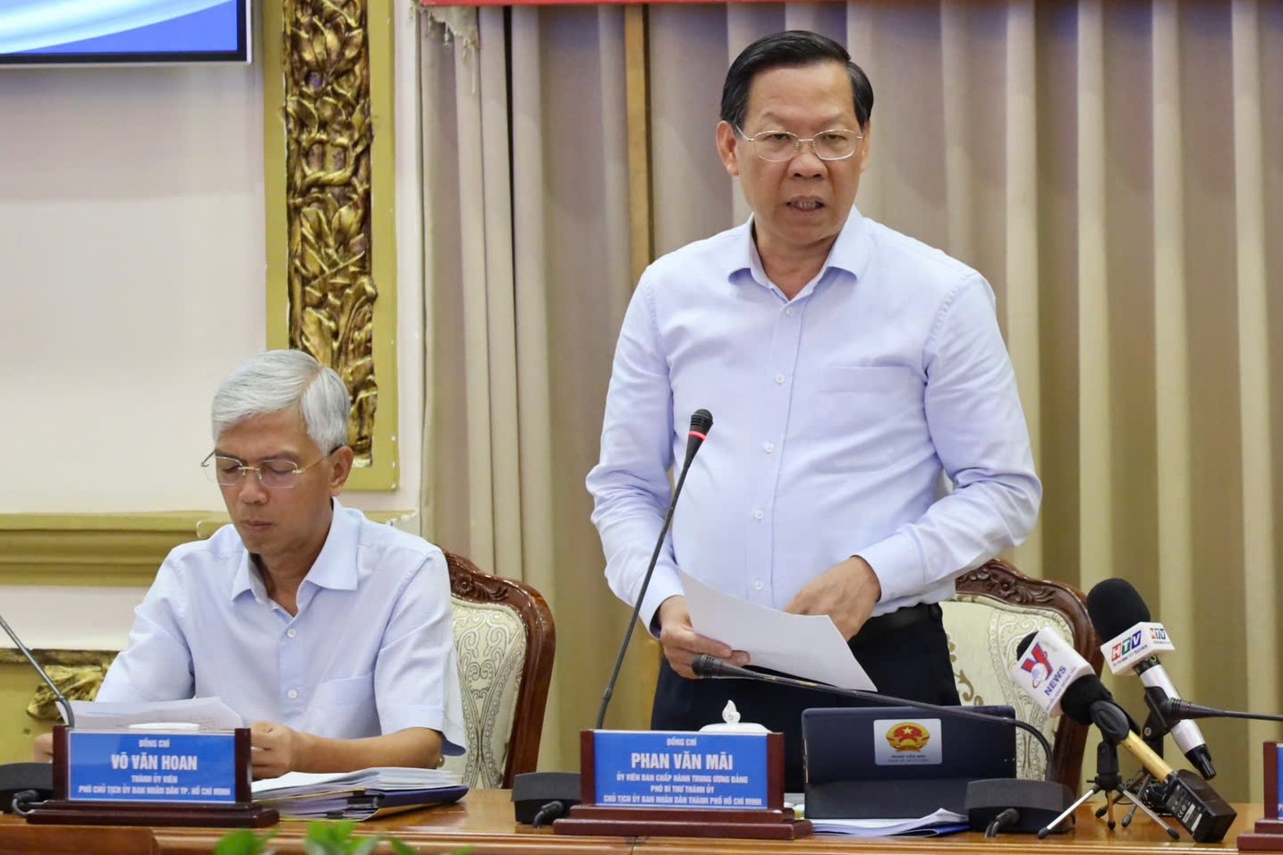 Chủ tịch UBND TP HCM Phan Văn Mãi tại cuộc họp,sáng 4/9. Ảnh: Trung tâm báo chí TP HCM