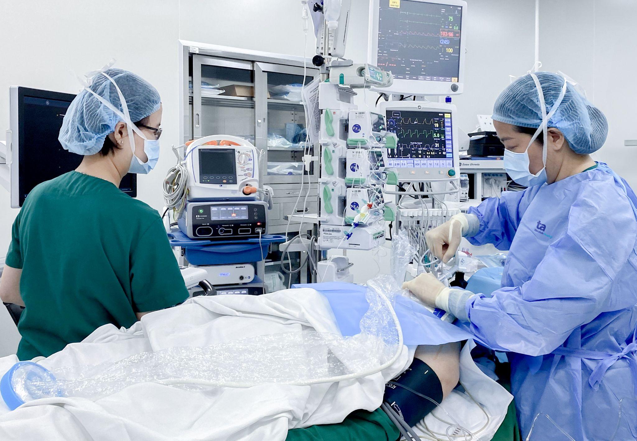 Bác sĩ Nga (phải) gây mê nội khí quản cho bệnh nhân. Ảnh minh họa: Bệnh viện Tâm Anh