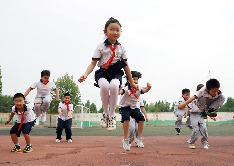Học sinh trong giờ thể dục tại trường Tiểu học Thực nghiệm số 2 Bắc Kinh. Ảnh: Xinhua