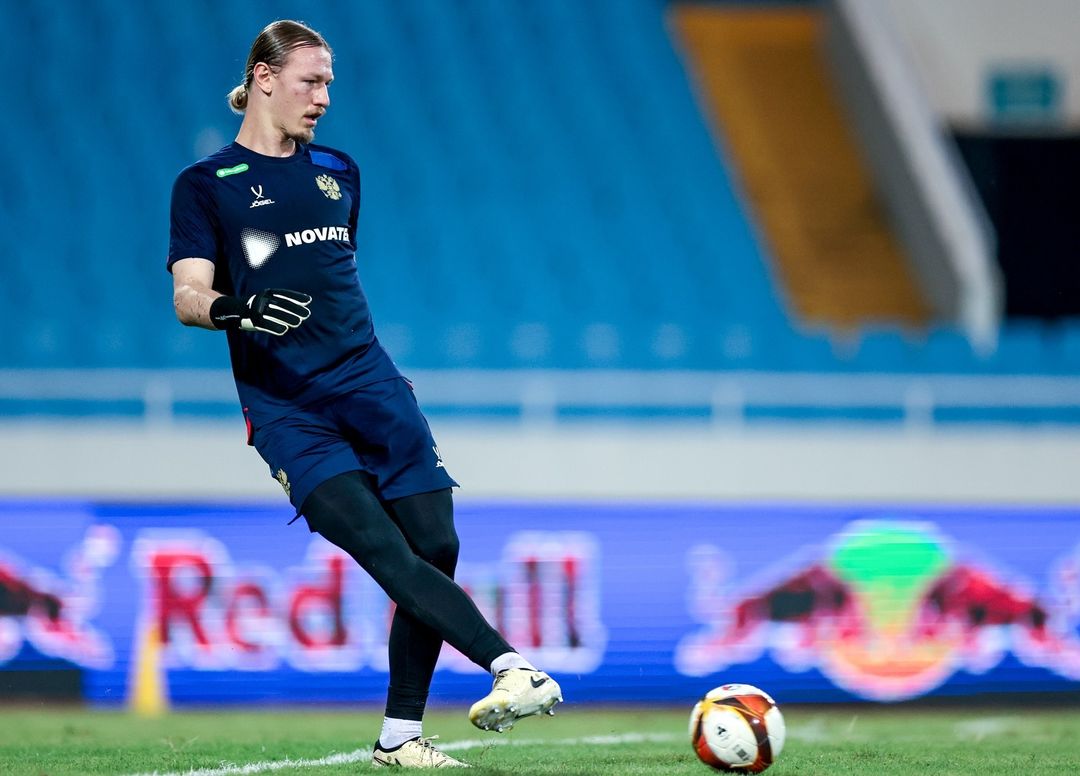 Thủ môn Matvey Safonov tập tại sân Mỹ Đình,tối 4/9. Ảnh: Team Russia