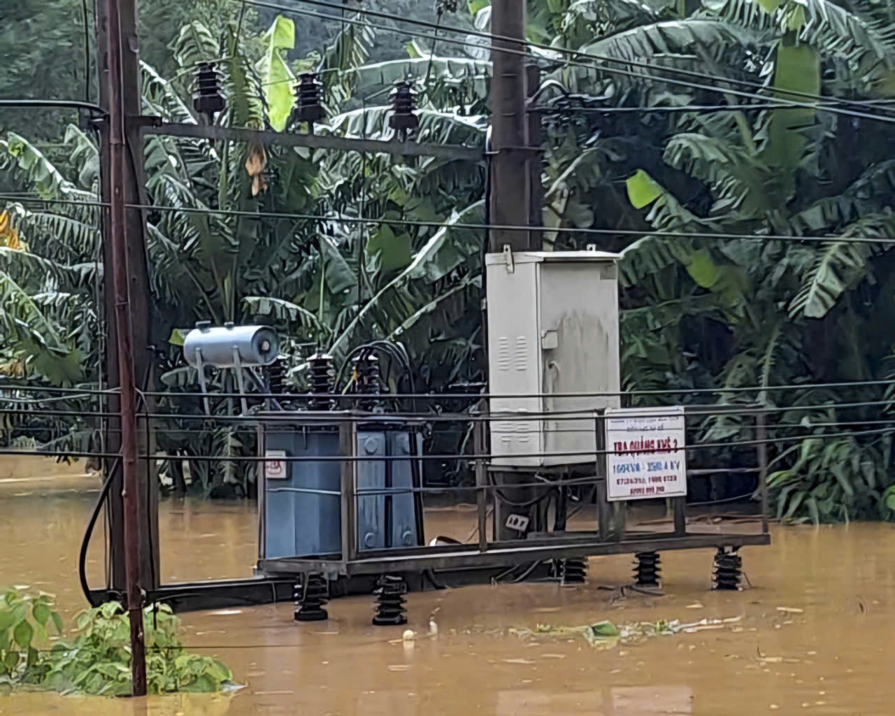 Một trạm biến áp trên địa bàn huyện Ba Bể,tỉnh Bắc Kạn ngập sâu trong nước,ngày 9/9. Ảnh: EVN
