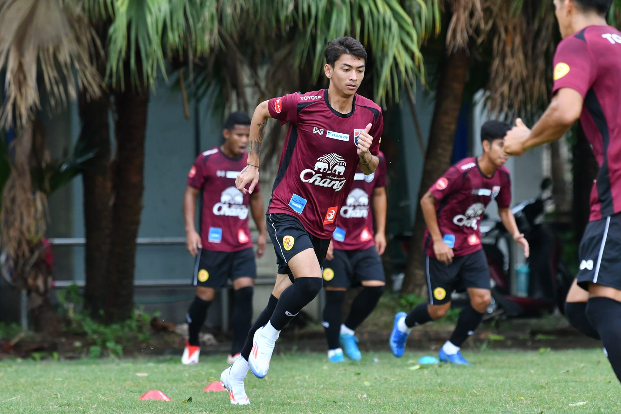 Tiền đạo Korawich tập tại sân phụ Mỹ Đình ngày 8/9. Ảnh: FAT