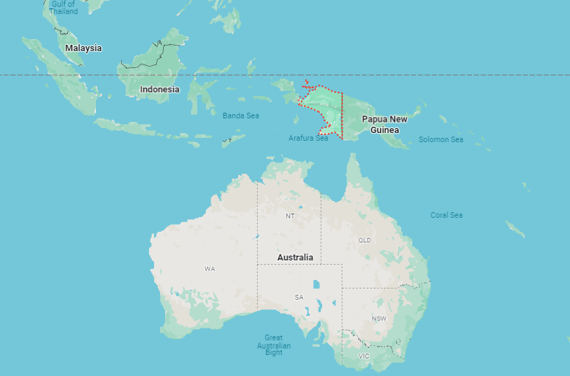 Vị trí tỉnh Papua (màu đỏ) của Indonesia. Đồ họa: Google Maps