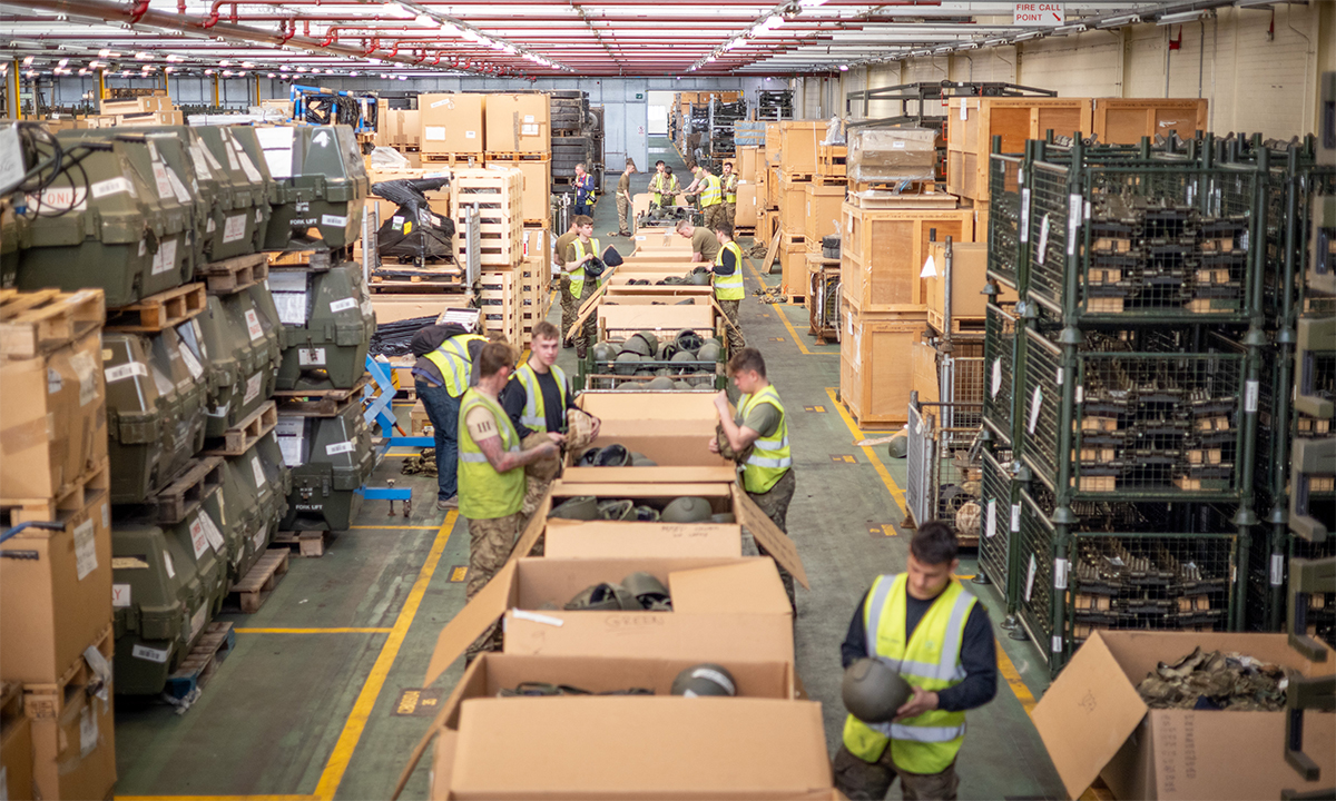 Binh sĩ Anh kiểm tra vật tư quân sự chuẩn bị chuyển cho Ukraine tháng 3/2022. Ảnh: BQP Anh