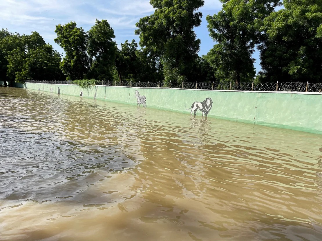 Nước lũ bao trùm sở thú Sanda Kyarimi ở Maiduguri ngày 10/9. Ảnh: Reuters