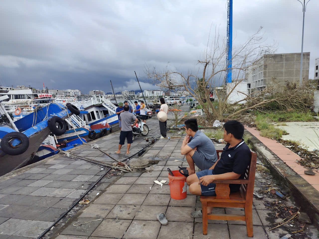 Ông Nguyễn Huân,chủ tàu Bài Thơ,cũng cho biết lượng khách "còn nhỏ giọt",tới 16/9 mới có đoàn khách đầu tiên. Dù vịnh Hạ Long đã đón khách trở lại,quang cảnh bến tàu còn ngổn ngang,nhiều tàu chìm chưa trục vớt.